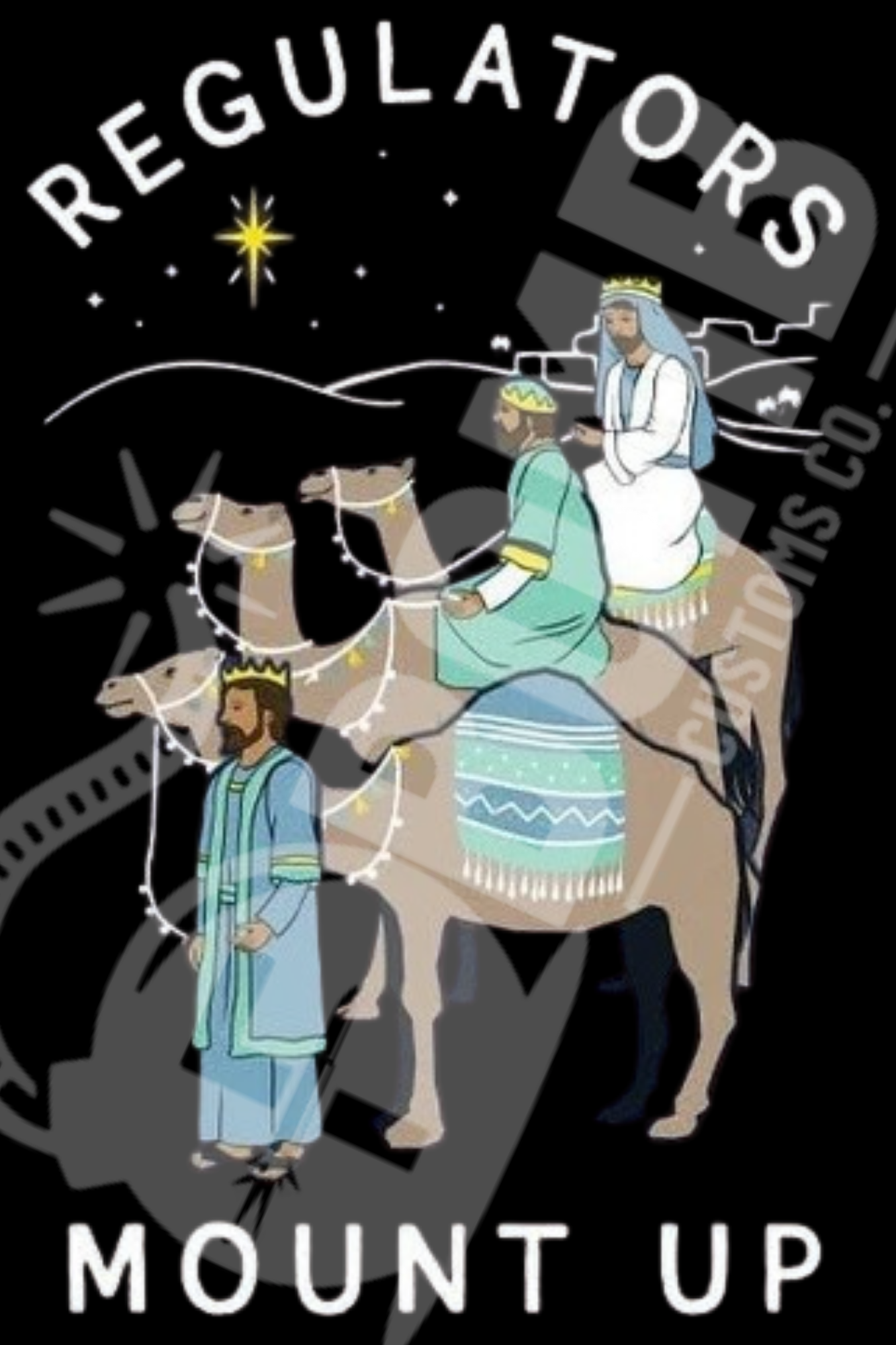 When the Three Wise Men roll out looking like the original Old Testament biker gang, you know Christmas just got way more gangster. This commemorates the night the boys saddled up, followed a GPS-star, and said, “Let’s go regulate some holiday chaos.” Throw this on and instantly become the fourth Wise Man. Mount up, it’s Christmas.